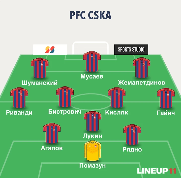 Армейцы вышли на матч практически основным составом и привычной для себя схемой 3-4-3. Единственные изменения с прошлого сезона – выход Глебова на позиции правого вингера, а также появление Кругового на левом фланге полузащиты.