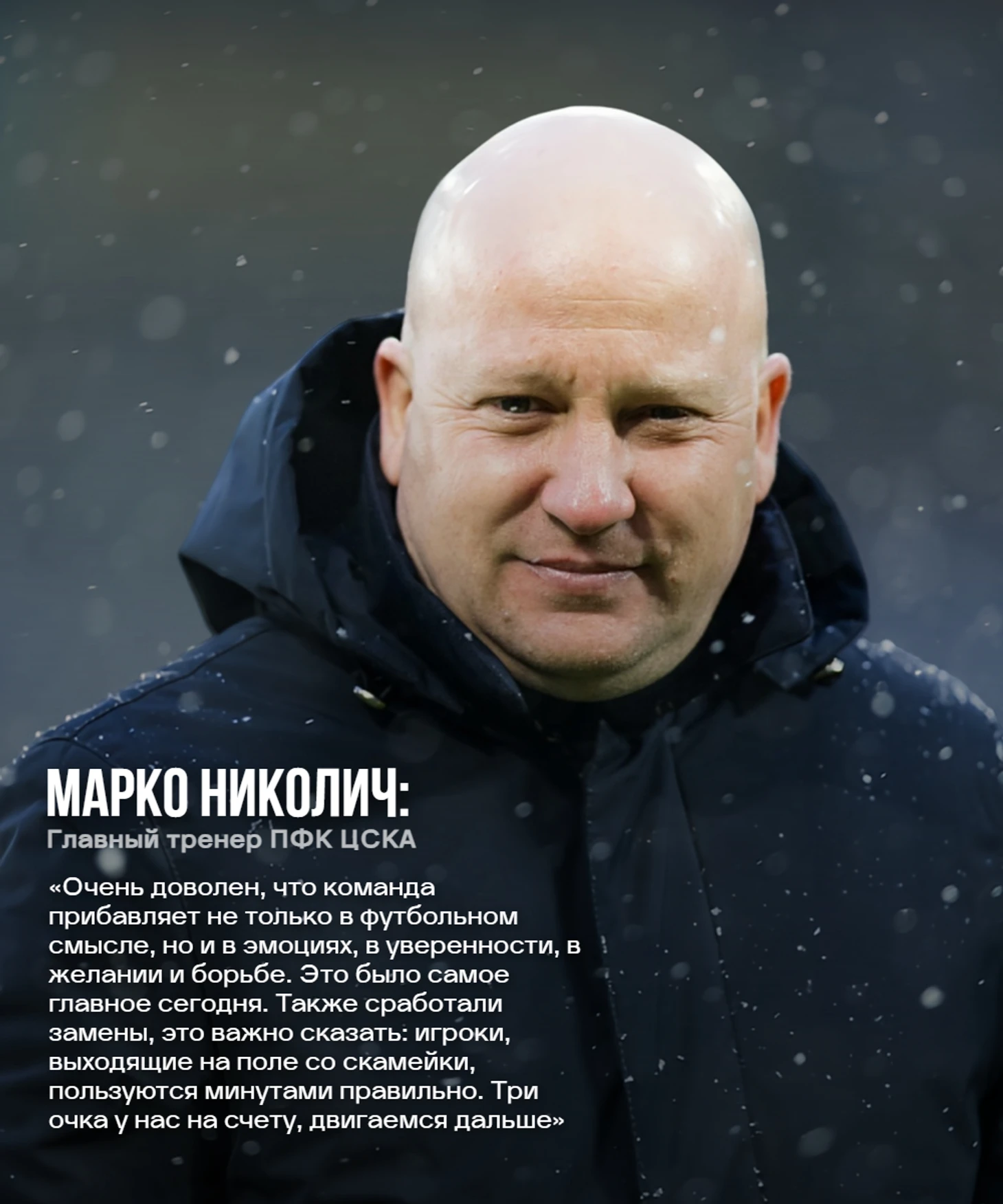 Повторюсь, ЦСКА добыл победу не столько благодаря своей тактике, сколько сумасшедшей самоотдаче всей команды. Желание победить, забрать 3 очка, доработать в каждом моменте — всё это было видно в глазах «армейцев».