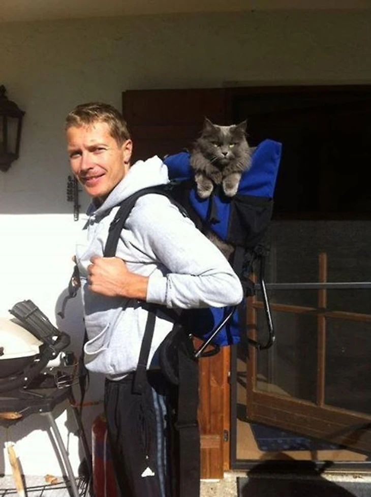 Ну и, конечно, Анди Бирнбахер - это просто замечательный человек. И с тех пор, как я однажды полезла читать архив с его интервью, не перестаю удивляться его неисчерпаемой жизнерадностности и силе воли. Вновь повторю свои постоянные слова, что Андреас - в лучшем смысле этого слова нормальный человек. Семья есть, дом себе построил (осталось дерево посадить, ибо сыновья уже есть), хобби есть - рыбалка, гольф, мотоциклы; очень любит своих болельщиков, тотализаторы устраивает (Анди, возобновляй это дело, я все еще хочу носочки с твоим автографом!), мероприятия всякие, но при этом и слишком открытым не является. И - я не была бы я, если бы не упомянула это - ну какие же у него роскошные коты!