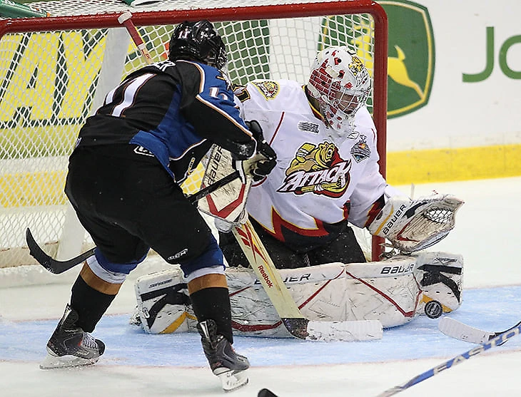 Потом он отлично сыграл на Мемориальном кубке (разыгрывают чемпионы трех главных юниорских лиг Канады и команда-организатор) – 95% отраженных бросков, при том что его команда стала последней, и серьезно поднялся в рейтинге – «Сент-Луис» выбрал его в третьем раунде драфта.