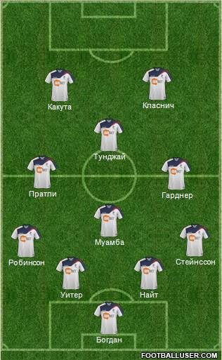 "Болтон" (4-1-2-1-2): Богдан - Стейнссон, Найт, Уитер, Робинсон - Муамба, Пратли, Гарднер - Тунджай, Какута, Класнич.