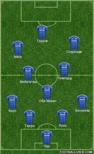 "Челси" (4-3-3): Чех - Босингва, Луиз, Терри, Коул - Оби Микел, Лэмпард, Мейрелеш - Мата, Старридж, Торрес.
