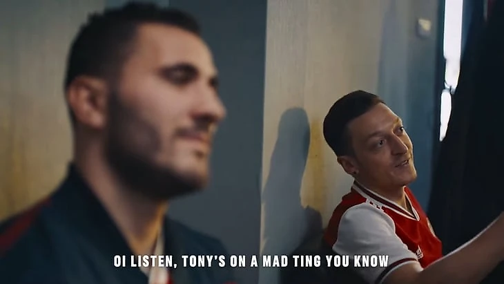 Первые кадры переносят нас в лондонскую парикмахерскую, где немецкий хавбек «Арсенала» Месут Озил демонстрирует партнеру по команде Сеаду Колашинацу (босниец, родившийся в Карлсруэ) новую прическу. Оба говорят с сильным лондонским акцентом.