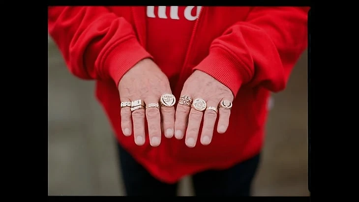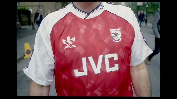 Дальше мы видим ретро-футболки «Арсенала» от adidas с буквами JVC на груди, в которых клуб взял титул-1988/89 (когда чемпионство решилось по количеству забитых мячей), а также Кубок обладателей кубков-1993/94. Плюс татуировки, перстни, шарфы – маркеры славного прошлого.