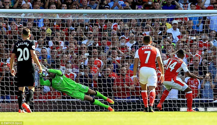 Арсен Венгер задал клубу такую предматчевую установку, которую я, в принципе, и предполагал. Команда играла в атакующий футбол, контролируя мяч, а атакующие игроки отдавали много сил, прессингуя соперника, дабы мяч не попал на половину поля Арсенала, где в защите располагалась пара Холдинг-Чемберс. Доминирование Арсенала в первой половине первого тайма выразилось в виде пенальти в ворота Ливерпуля, когда Уолкотт не очень хорошо обработал мяч, идущий к нему свечкой, а Альберто Морено сбил его с ног в штрафной мерсисайдцев. Фигура пенальтиста стала для меня (как и для многих болельщиков Арсенала) настоящим шоком, ведь Уолкотт отродясь не бил пенальти в Арсенале. Тем более, вместе с ним на поле были Аарон Рэмзи и Алексис Санчес, которые вполне могли бы пробить 11-метровый.