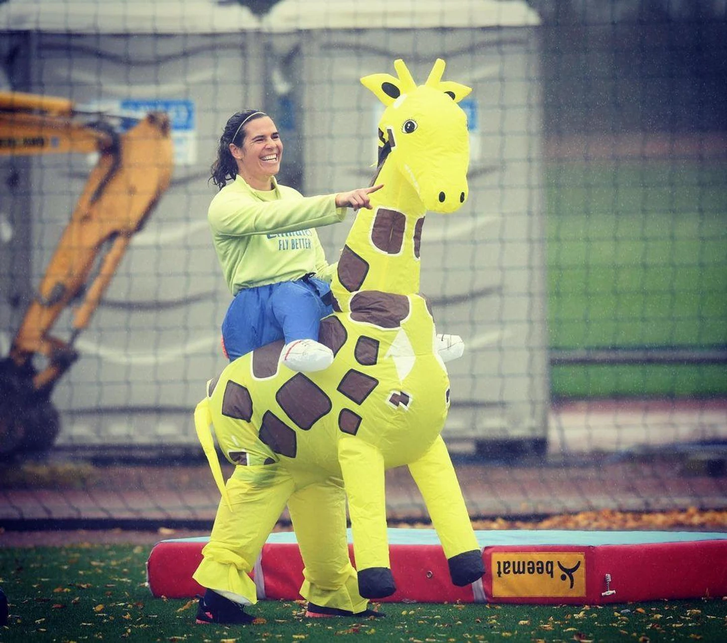 Клуб, к которому я присоединялась, был, вероятно, лучшим местом для меня в то время. Это был наш местный клуб, мы опоздали на регистрацию, поэтому мне сказали, что в Четвертом дивизионе я могу играть на любой позиции и могу там развлекаться или могу играть вратаря в Первом дивизионе. Я сказала: "Я играла в АФЛ, и я знаю, как бить и ловить, так что я буду вратарем". На самом деле я бы играла где угодно – просто хотела попасть в Первый дивизион.