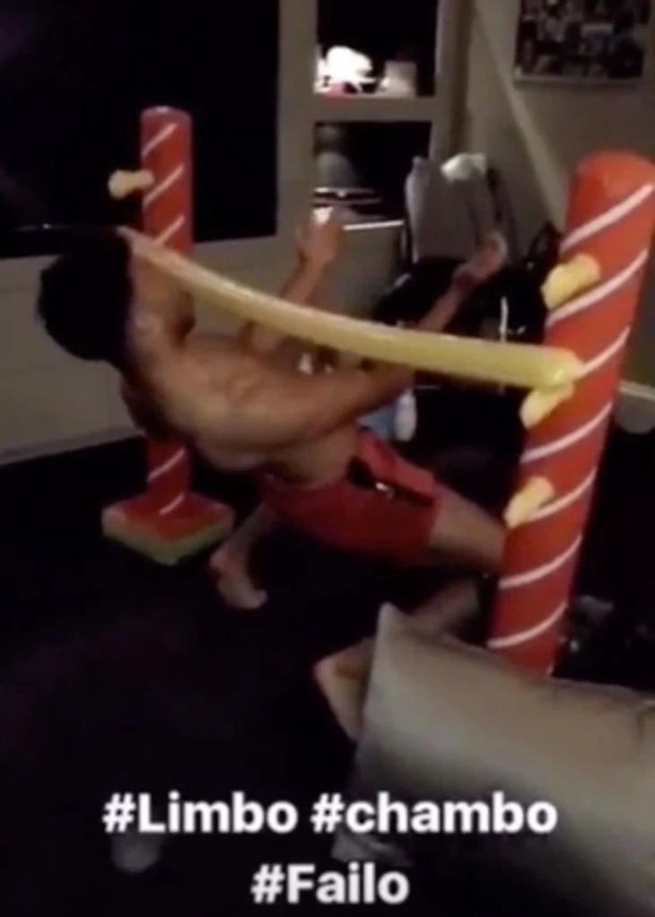 Лимбо это танец-состязание. Нужно, танцуя, пройти под низко установленной планкой, не задеть ее и не упасть.