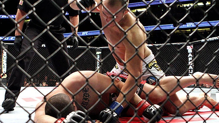 Веласкез же очень быстро перевел «Бигфута» на настил, где растопил кровавую баньку. Ударом локтя нанес первое рассечение, кровь хлестала так, что весь октагон стал цвета флага СССР. А Кейн все бил, бил и бил. «Бигфут» уже только защищался, он уже не видел ударов залитыми кровью глазами…