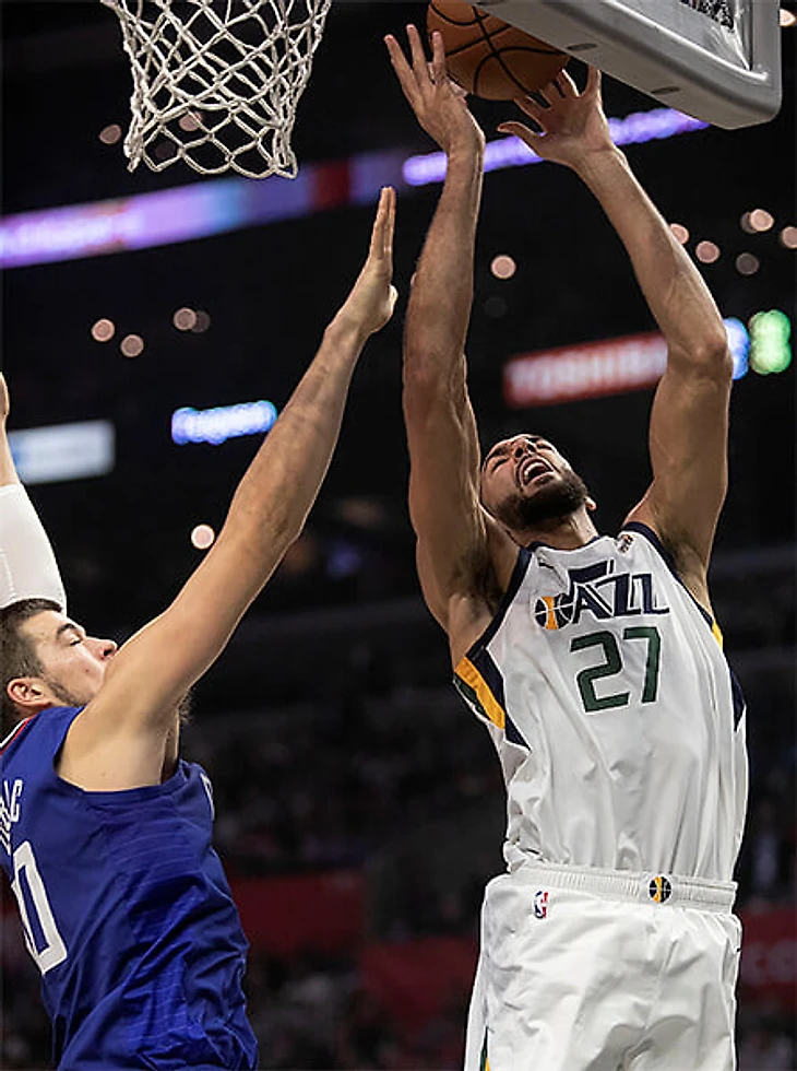 Когда у противника стоит центровой на «данкер-споте», Руди хватает антропометрии, чтобы выйти из зоны и вернуться, перекрывая траектории передач туда за счет размаха рук, активности и игрового мышления против 90% возникающих вызовов. Это то, что принесло ему оборонительное признание, призы и статус звезды НБА.