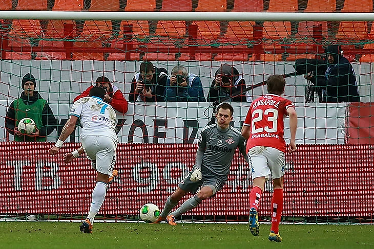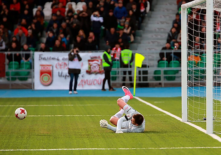 Еще очень действенно при пенальти оказывать давление на бьющего. Как-то с «Волгой» мне бил Димка Булыкин, я ему перед ударом сказал: «Бул, не надо бить, возьму». Он такой: «Посмотрим». В итоге пробил несложно в левый от меня, я отбил.