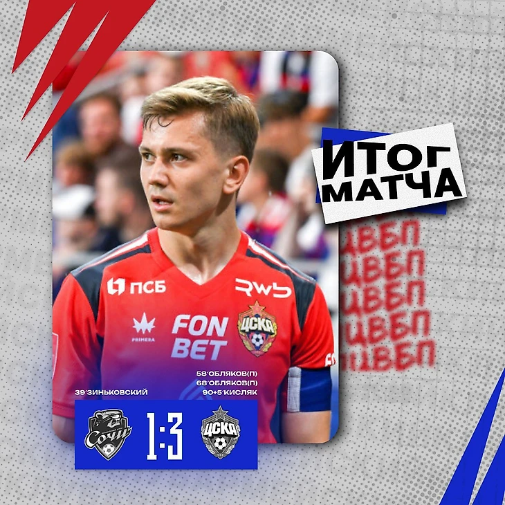 Вообще, происходящее на поле было открытой книгой, в которой было написано «ТАК ИГРАТЬ НЕЛЬЗЯ». Собственно, минуте на 30-й я начал замечать эту фразу, отметив, что ЦСКА высоко поднимает защитников, катающих мяч туда-сюда, в попытках нащупать разрезающую передачу. А ты ее попробуй отыщи, если «Сочи» встали на своей половине в две линии, да стоят. Вообще, игра южан заключалась в том, чтобы рвать вперед на контратаках, на скорости... И самое смешное, что это же ровно то, за счет чего ЦСКА отлично стартовал сезон. «Сочи» играл в стиле ЦСКА, а ЦСКА... Не играл ни в каком стиле. Все острые моменты только за счет прессинга или ошибок обороны соперника. И в таких случаях включалась армейская классика – на скорости вперед, заполняя пространство и сужаясь ближе к воротам.