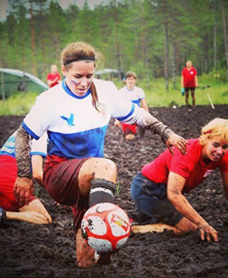 «Все началось с обычного футбола пять лет назад. Наши друзья на базе мужской любительской футбольной команды решили создать женскую — из подруг и любимых девушек, чтобы выставить ее на чемпионат города, ну и так, посмеяться немножко. И позвали меня, поскольку я всю жизнь занималась спортом. А потом эти молодые люди решили поучаствовать под Петербургом в турнире на болотных полях. Мы поехали посмотреть и поболеть за них — так и заинтересовались. Болотный футбол появился в 1998 году, когда финский лыжник Юрки Вяянянен решил в неcезон для тренировки играть в футбол. А погода в Финляндии плохая, поля вязкие, много воды. И получилось, что финны стали играть не в обычный футбол, а в грязи — ради развлекухи. Постепенно в Финляндию стали приезжать команды со всего мира. Но от России на чемпионате мира не было ни одной женской команды, только команды смешанного типа, в которых на поле играют всего две девочки. Нам стало интересно — а сможем ли мы? И вот уже четвертый год подряд ездим в Финляндию единственной женской командой — и не просто Петербурга, а всей России. И, сказать по правде, чувствуем большую ответственность за честь нашей страны.