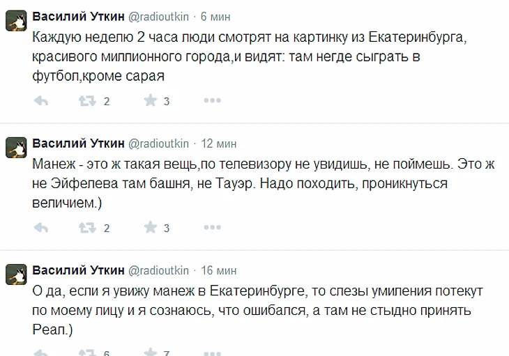 Вспомним как Василий Уткин отзывался о манеже в Екатеринбуре ...