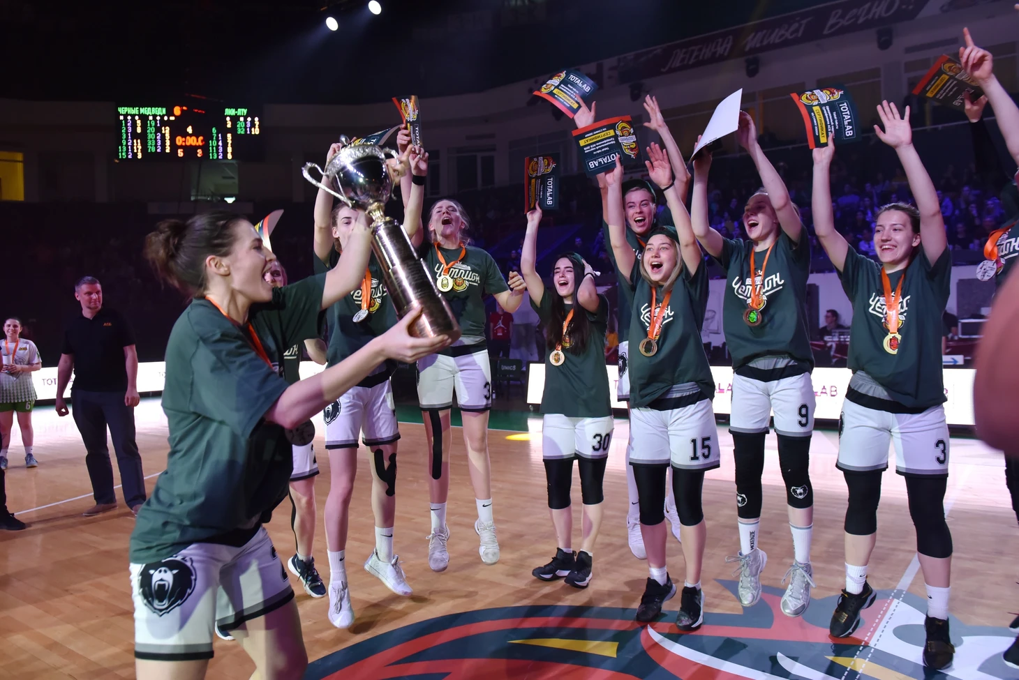 Последняя атака в матче: МГАФК в нападении, Дмитрий Семенас делает передачу на Павла Алексиевича, который баззером приносит своей команде пятое золото в истории Ассоциации – 69:68!