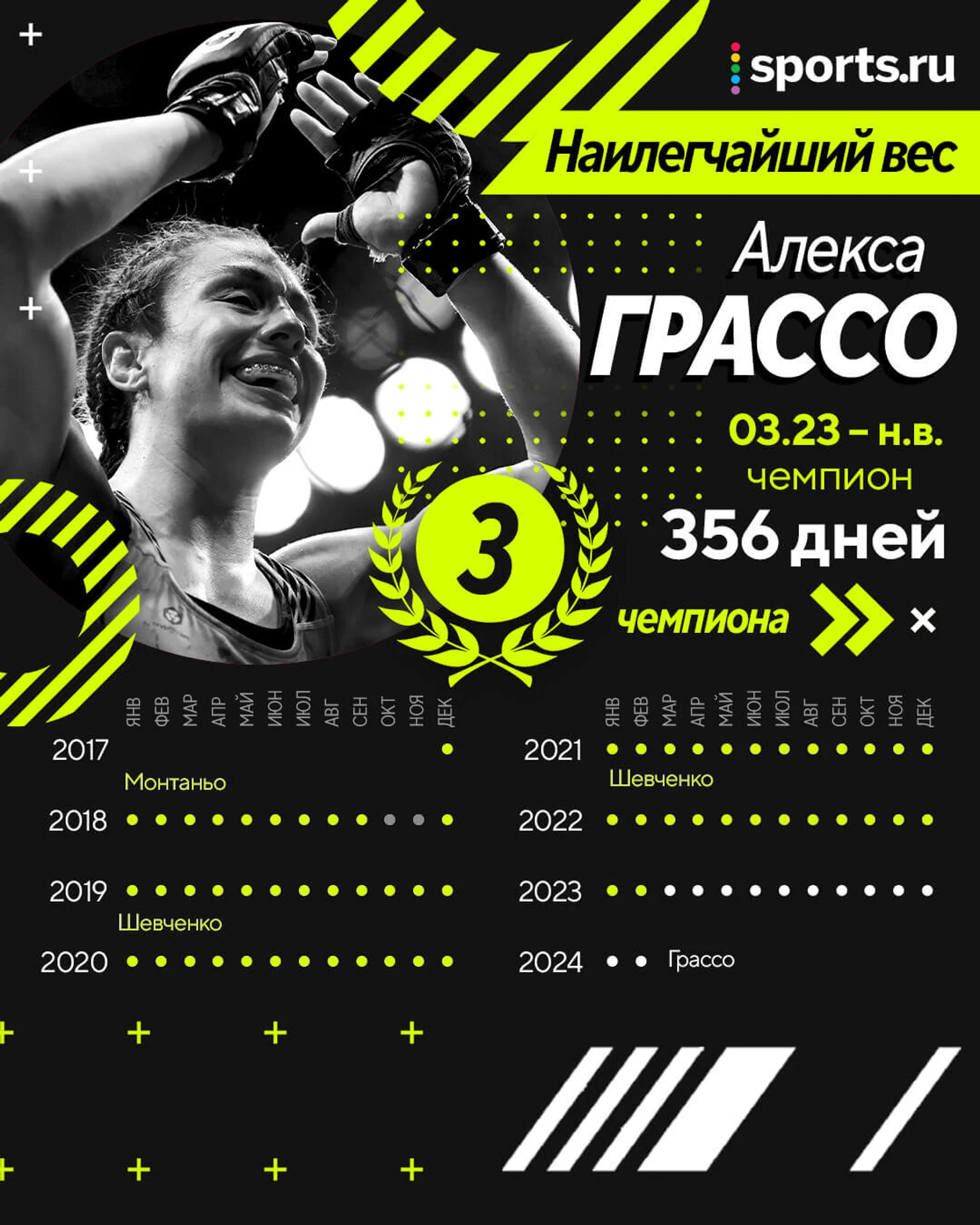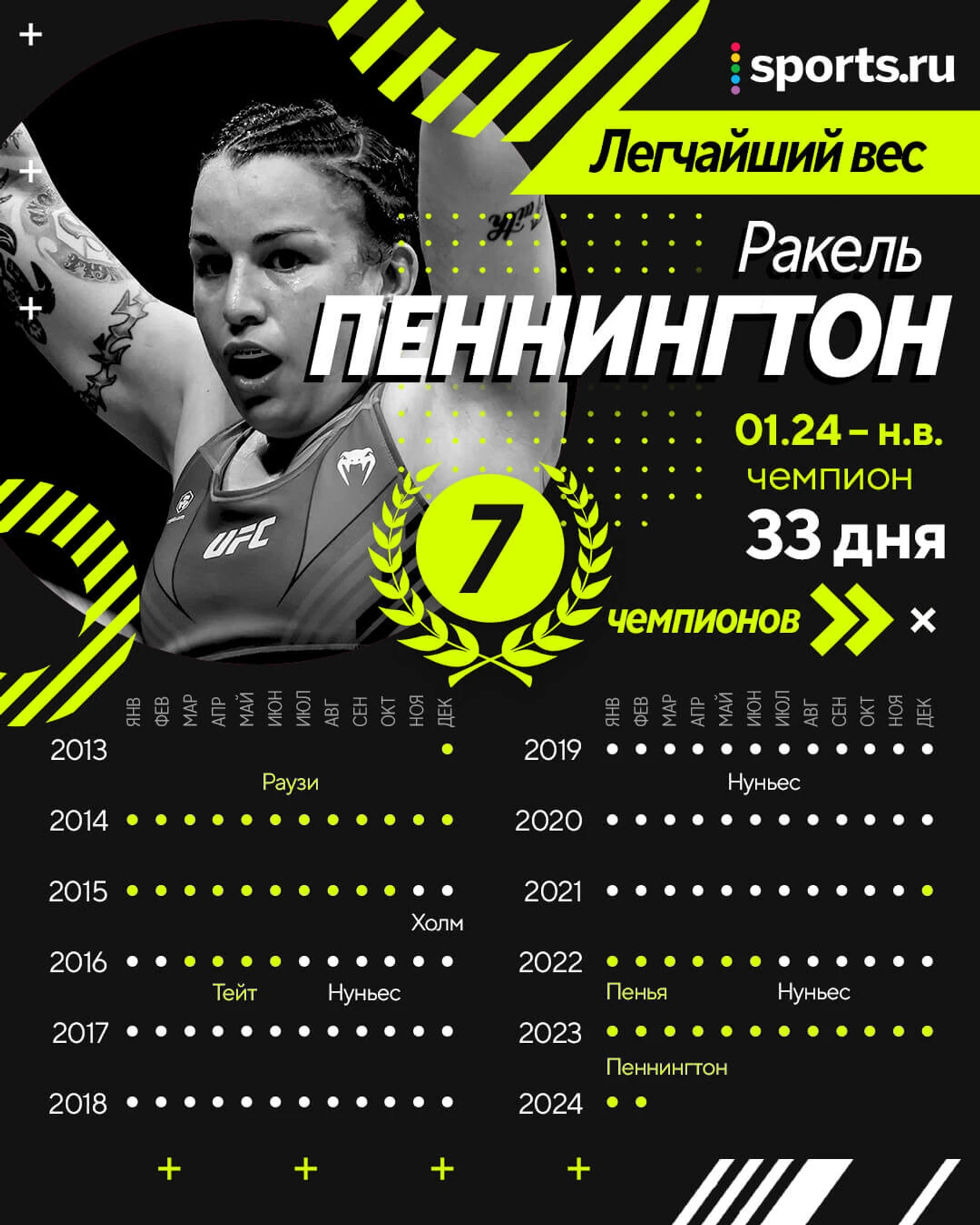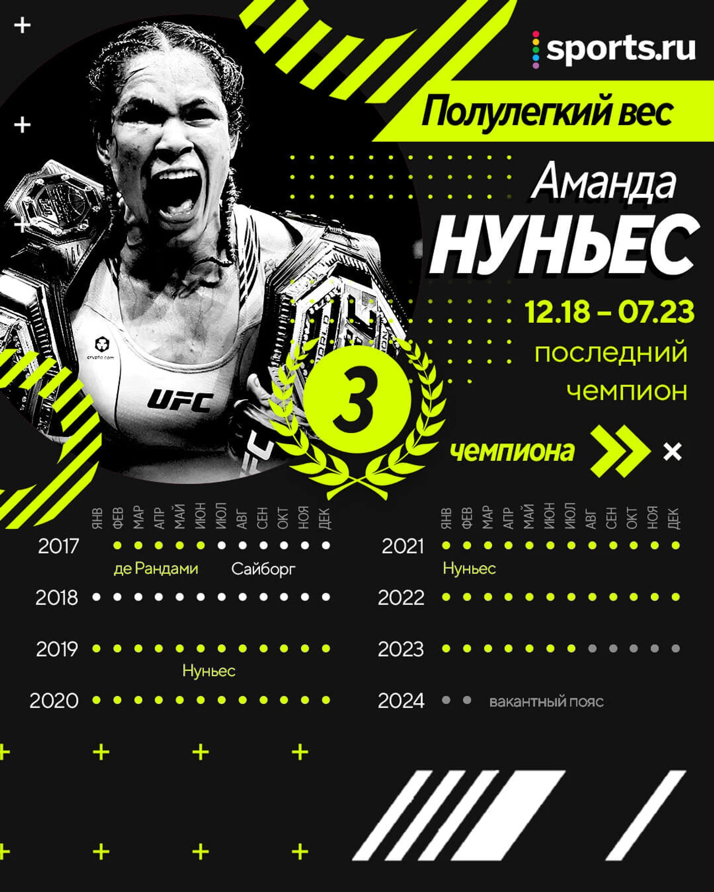 В самом звездном женском дивизионе – семь чемпионств и шесть разных чемпионок за последние 12 лет. Дольше всего здесь правили Ронда Раузи и Аманда Нуньес.