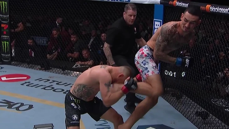 Кажется, Макс Холлоуэй превзошел все ожидания относительно его перехода в легкий вес. Он сохранил молниеносную работу ног и рук, но не выглядел бойцом из другой категории, как в поединке против Дастина Порье пять лет назад. Сочетание скорости полулегковеса и силы легковеса оказалось очень впечатляющим.