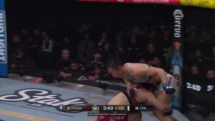 В партере Чжан доминировала. Сяонань постоянно отдавала спину при попытках уйти от прохода, свипах и сменах позиции, а Чжан всегда пользовалась возможностью: выходила на прием или наносила удары из бэк-маунта. Итог: более 12 минут контроля, 71 удар в партере и уверенная победа решением.
