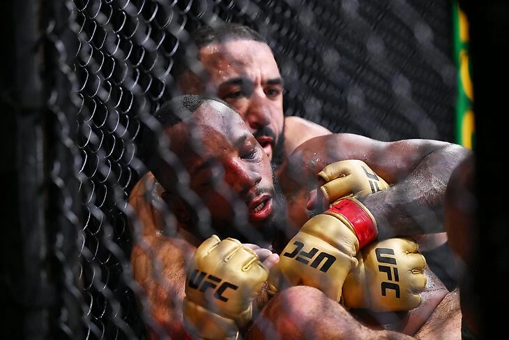 Напряженный бой, прошедший всю дистанцию, – настоящий мастер-класс по смешанным единоборствам. Соперники умело комбинировали ударку и борьбу, показали отличную работу в партере и клинче. Бой продлился все пять раундов, но это не сказалось на зрелищности: события постоянно менялись, обрастая новыми поворотами. Топовый уровень!