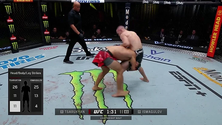 Важно отметить, что судейские критерии ММА отличаются от турниров по борьбе и грэпплингу. Позиция не так важна – большее значение имеет нанесенный урон и попытки приемов. Поэтому, если боец половину раунда пролежит в позиции бэк-маунта без попыток сделать удушающий прием, а затем вернется в стойку и допустит много попаданий – раунд уйдет сопернику.
