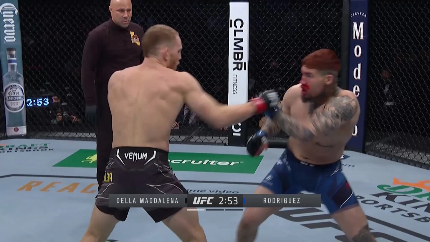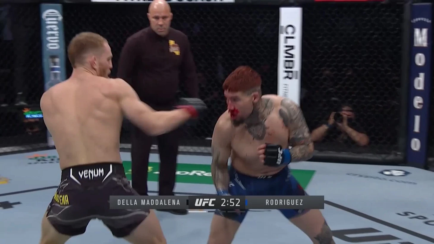 Джебы Маддалены – не про частоту, а про урон. В первом поединке в UFC он разбил ими нос Пита Родригеса, завершив избиение классической для себя атакой навстречу. Кстати, иногда Маддалена использует джебы как приманку, чтобы вытянуть соперника на себя – в заключительной атаке против Родригеса так и получилось.