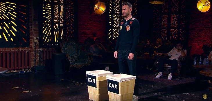 В конце была игра: Акинфеев должен был рассортировать музыкальные диски по корзинам «Кул» и «Кал».