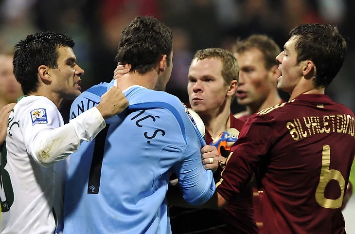 В тот же день, кстати, так же тупо и бездарно украинцы отдали путёвку в ЮАР таким же донным как словенцы грекам. Но у Украины хотя бы игроков нормальных не было и это чудо, что они вообще в такую позицию попали, а как Россия бездарно просрала ту путёвку в Южную Африку... это жесть.