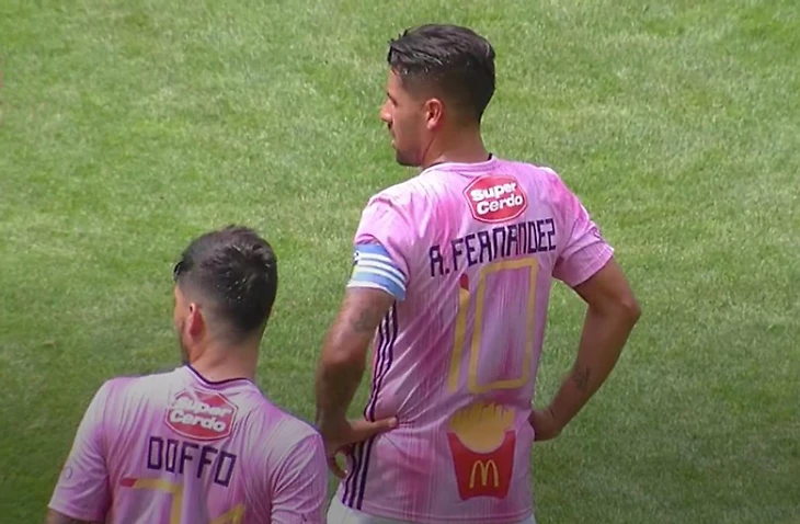 «О'Хиггинс» из чилийской высшей лиги на днях представил новую форму. Она розовая, на спине – номера в виде картошки фри с кетчупом. Это реклама сети фастфудов McDonald's – одного из спонсоров клуба.