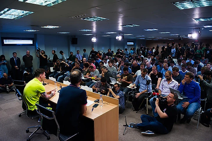 Сегодня прошла пресс-конференция «Барселоны» перед финалом кубка Испании против «Валенсии». Клуб заранее анонсировал, что на нее придут главный тренер Эрнесто Вальверде, Жерар Пике и Лео Месси. Приход Лео – действительно большое событие. Аргентинец не участвовал в пресс-конференциях клуба уже 4 года – со времен последней победы в Лиге чемпионов.