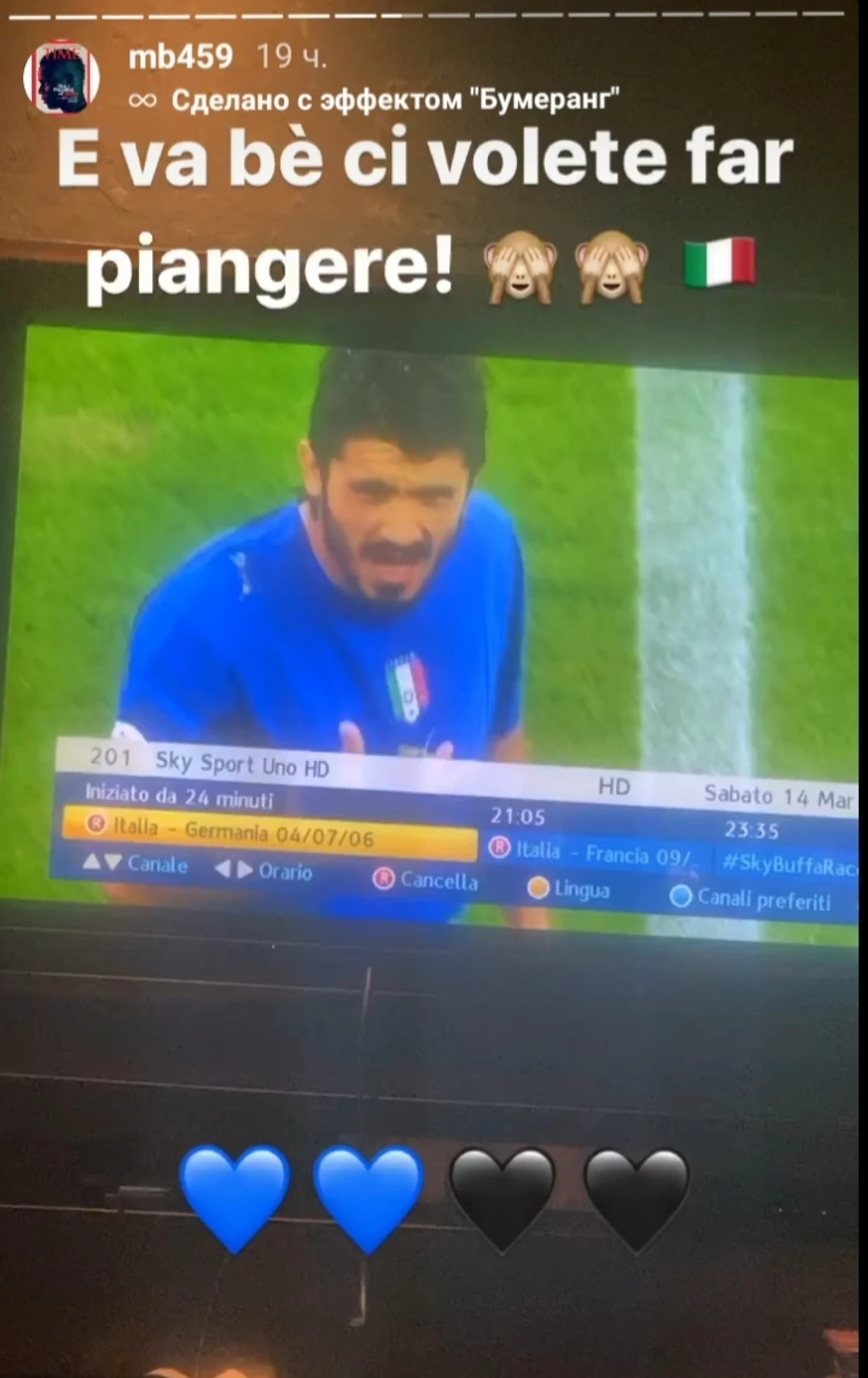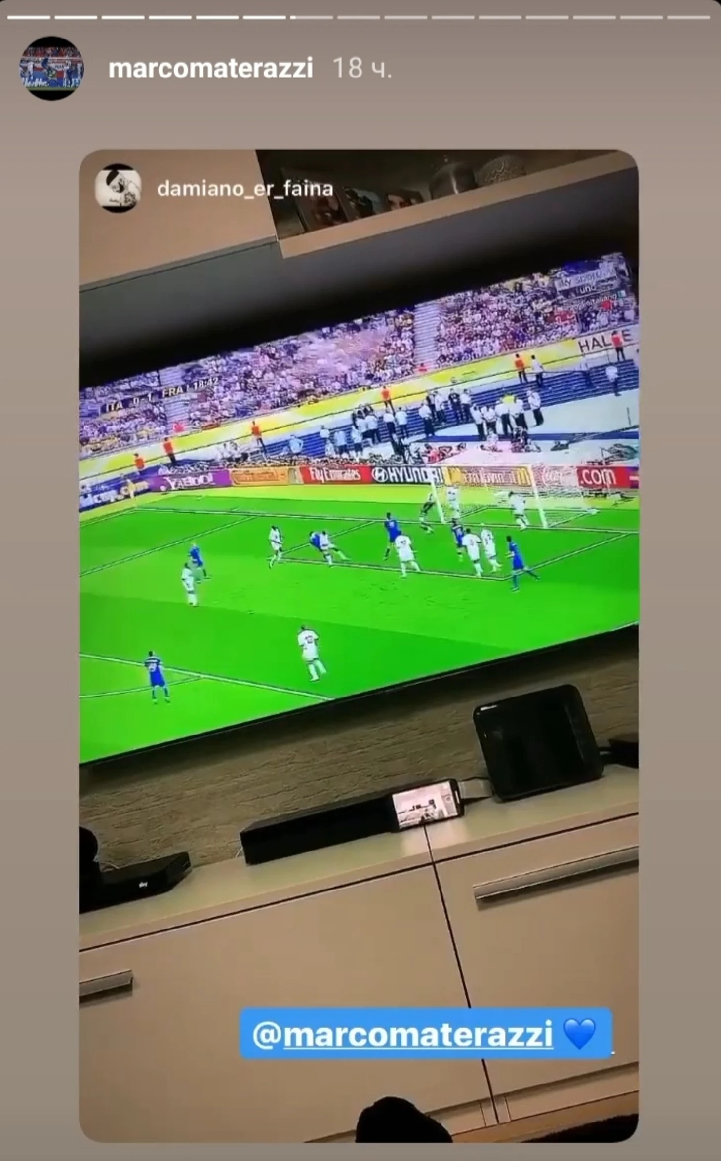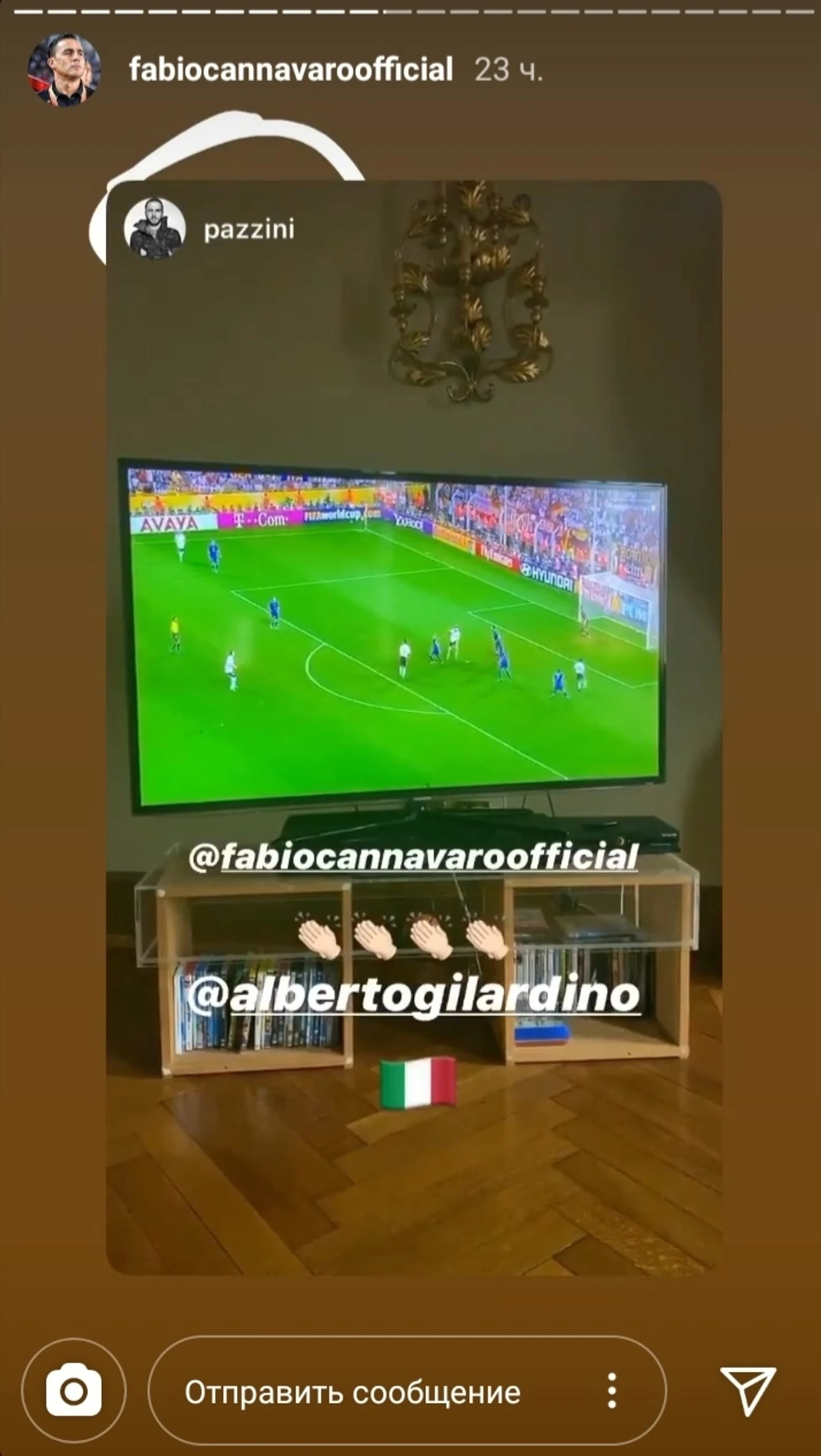 Другие чемпионы мира репостят к себе сторисы простых людей, которые смотрят футбол 14-летней давности. Так поступают, например, Марко Матерацци и Фабио Каннаваро. У экрана даже Марио Балотелли.