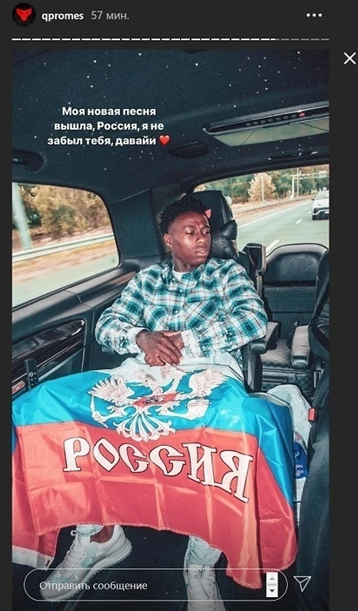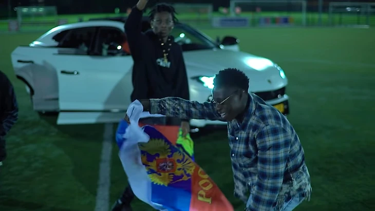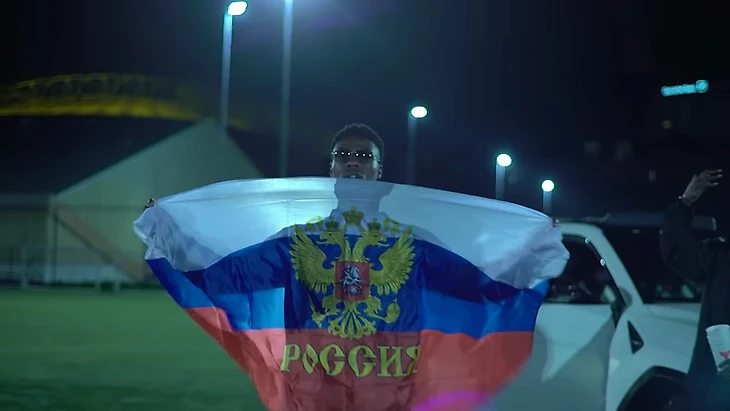 Если вы включите клип, то сразу заметите – в кадре Промес постоянно тусуется с российским флагом.