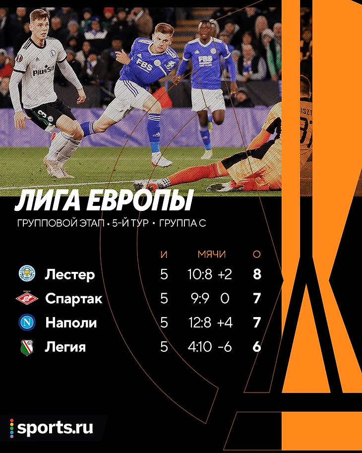 ✅ Победа «Спартака» – победа «Лестера» над «Наполи» – второе место и 1/16 ЛЕ