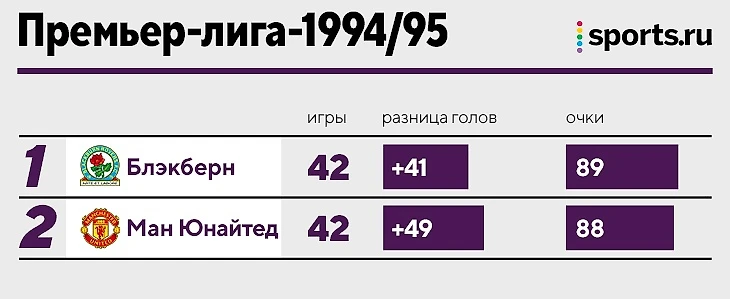 «Блэкберн» Кенни Далглиша классно шел по дистанции – в нападении решала пара Ширер-Саттон, наколотившая 49 мячей на двоих. А «Юнайтед» в решающий момент подвел Эрик Кантона – ударил фаната и получил дисквал до конца сезона.