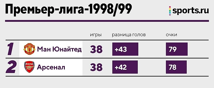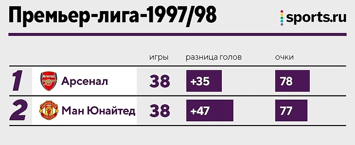 «МЮ» почти не отдавал домашние титулы, но тут в Премьер-лигу пожаловал Арсен Венгер. Полтора сезона ушло на дополнительные настройки, но потом «Арсенал» взял чемпионство достаточно уверенно. И даже оформил золотой дубль, победив в Кубке Англии.
