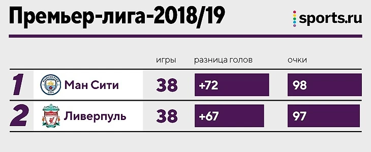В последние пять лет только «Ливерпуль» Клоппа мог навязать конкуренцию «Манчестер Сити» Пепа Гвардиолы. Команды выдали две выдающихся чемпионских гонки – в сезонах-2018/19 и 2021/22. Оба раза перешагнули за гроссмейстерскую отметку 90 очков. Но если выбирать из двух, то лучшая была в 2019-м.