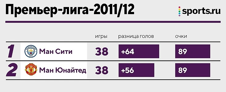 Единственный случай, когда судьбу чемпионства решила разница забитых и пропущенных. В этой гонке было все: героическая победа над прямым конкурентом, отыгранный отрыв и, конечно, самая безумная развязка сезона в истории Премьер-лиги.