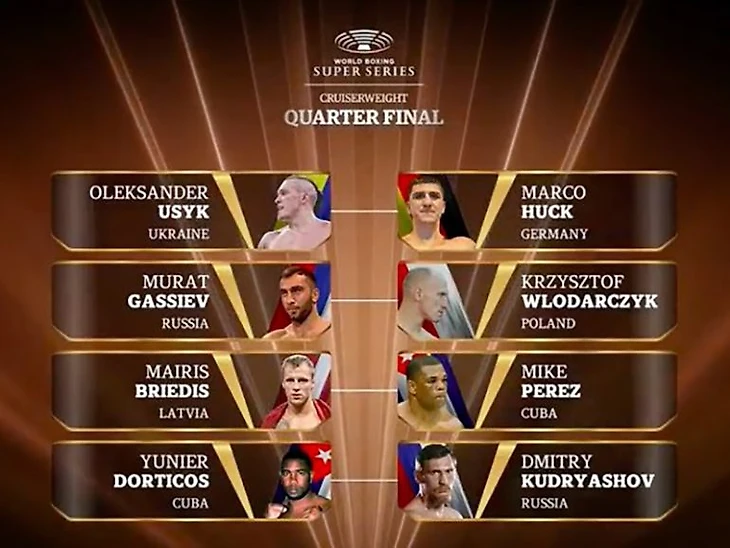 Каждый четвертьфинал будет проведен в отдельном вечере. Рассчитывайте на то, что суперсредневесы и тяжи будут разведены по выходным, и в каждый выходные будет по 1-му бою. А всего их по 4 на вес. Таким образом, наши ребята выйдут в ринг, скорее всего, только в октябре.