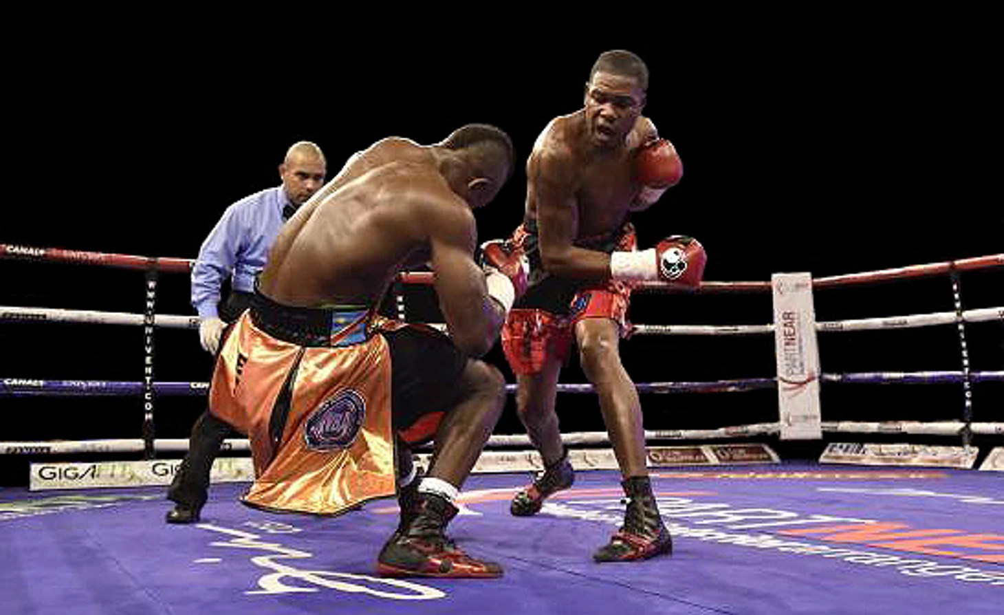 Бум! Правый прямой попадает куда-то между подбородком и тем местом, где голова крепится к шее (спереди). Дмитрий Кудряшов заваливается тяжело, как сноп сена или как подкошенный пулей солдат. Он в сознании, но не в полном – глаза бешено вращаются (чуть-чуть похоже на Кертиса Стивенса в поединке с Геннадием Головкиным). Дмитрий встает, но рефери Рафаэль Рамос уже размахивает руками – причем в прямом эфире от первого лица. Хардкор!