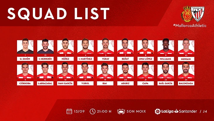 Андер Капа и Юри Берчиче являются, возможно, лучшим дуэтом крайних защитников в Ла Лиге этого сезона, и им необходимо будет снова проявить себя наилучшим образом, чтобы взломать не самую успешную оборону «Мальорки». Иньяки Уильямс — не лучший в мире форвард, но дебютантам Примеры «чёрная пантера» вполне способен забить. Кроме того, решающим фактором может стать прекрасно организованная защитная линия «Атлетика».