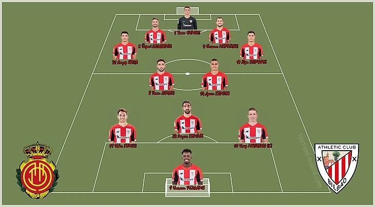 Ориентировочный состав: Унаи СИМОН — Андер КАПА, Йерай АЛЬВАРЕС, Иньиго МАРТИНЕС, Юри БЕРЧИЧЕ — Дани ГАРСИЯ, Унаи ЛОПЕС — Ибаи ГОМЕС, Рауль ГАРСИЯ, Икер МУНИАИН (к) — Иньяки УИЛЬЯМС.