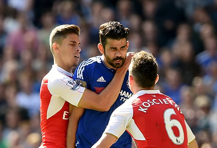 Диего Коста прибыл в Англию с репутацией зачинщика и провокатора и быстро начал оправдывать ее. Его вспышки на поле были такими же запоминающимися, как и голы: издевательства над Симусом Коулманом после того, как защитник «Эвертона» забил гол в свои ворота, вызвали яростную реакцию вратаря «ирисок» Тима Ховарда; яростная конфронтация с защитником «Манчестер Сити» Пабло Сабалетой за несколько мгновений до того, как аргентинец будет удален с поля; драка с Мартином Шкртелом; эпизод, когда Коста наступил на ногу Эмре Джану в напряженном двухматчевом противостоянии с «Ливерпулем» в полуфинале Кубка Лиги на «Стэмфорд Бридж».