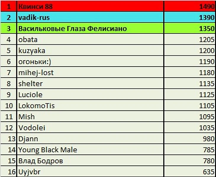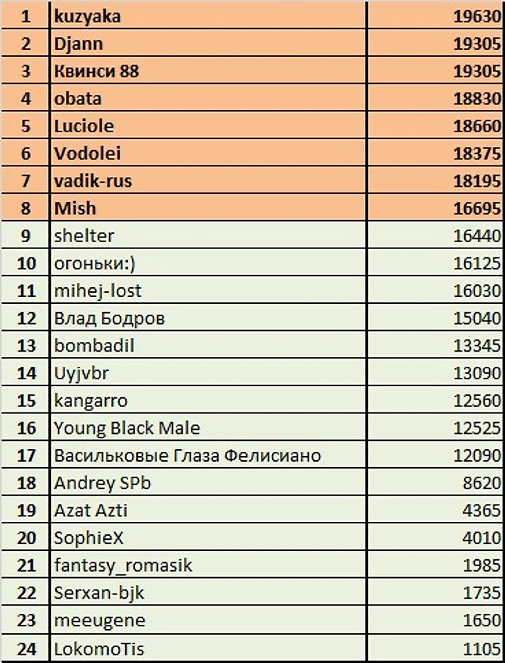 Победителем 9 тура становится Квинси 88! Поздравляем!
