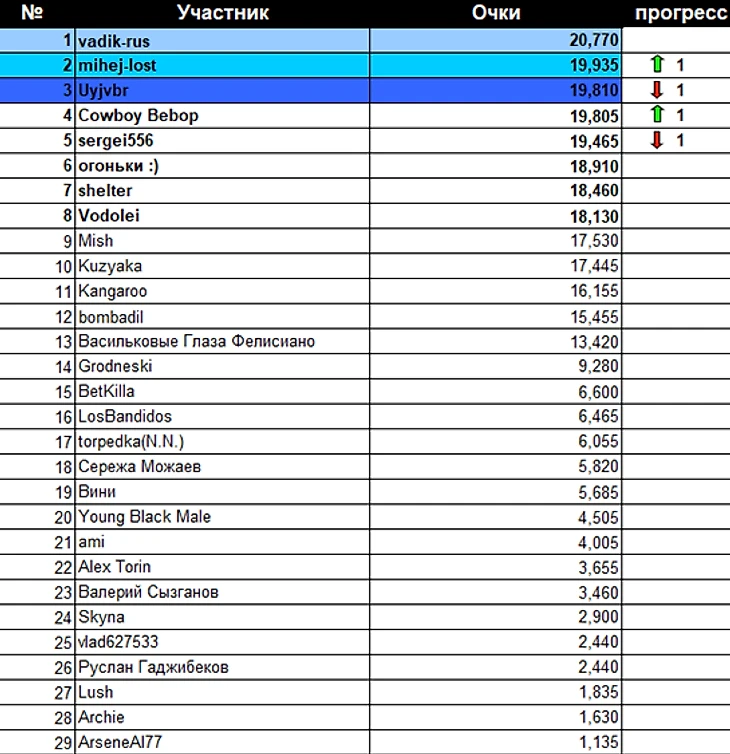 * Не забываем поздравлять чемпионов турнира в коментариях к посту ведь на их месте в любой момент можете оказаться и вы :)