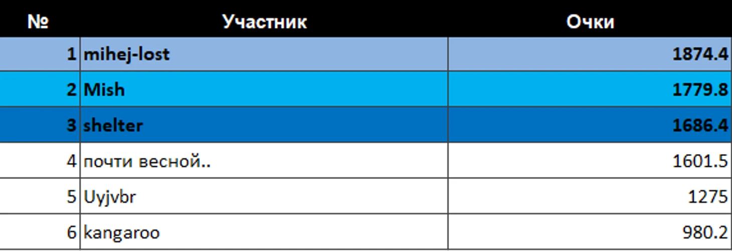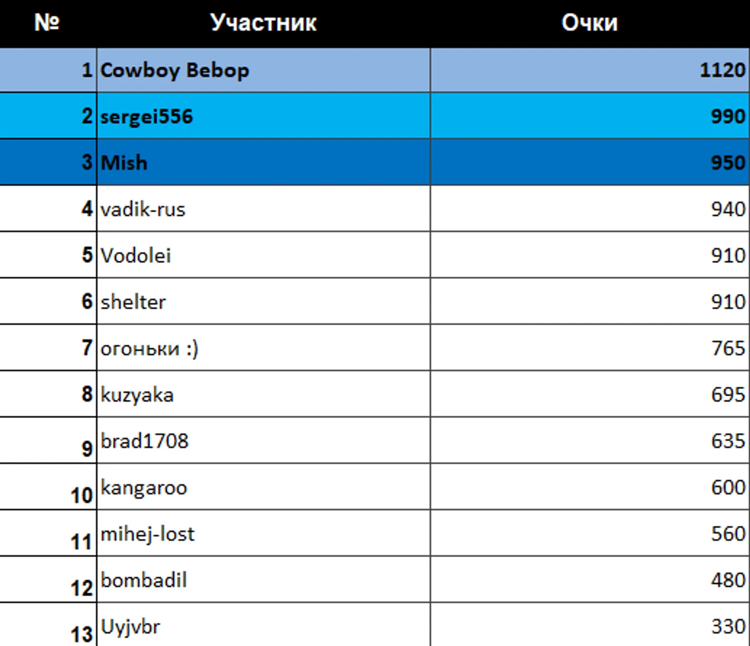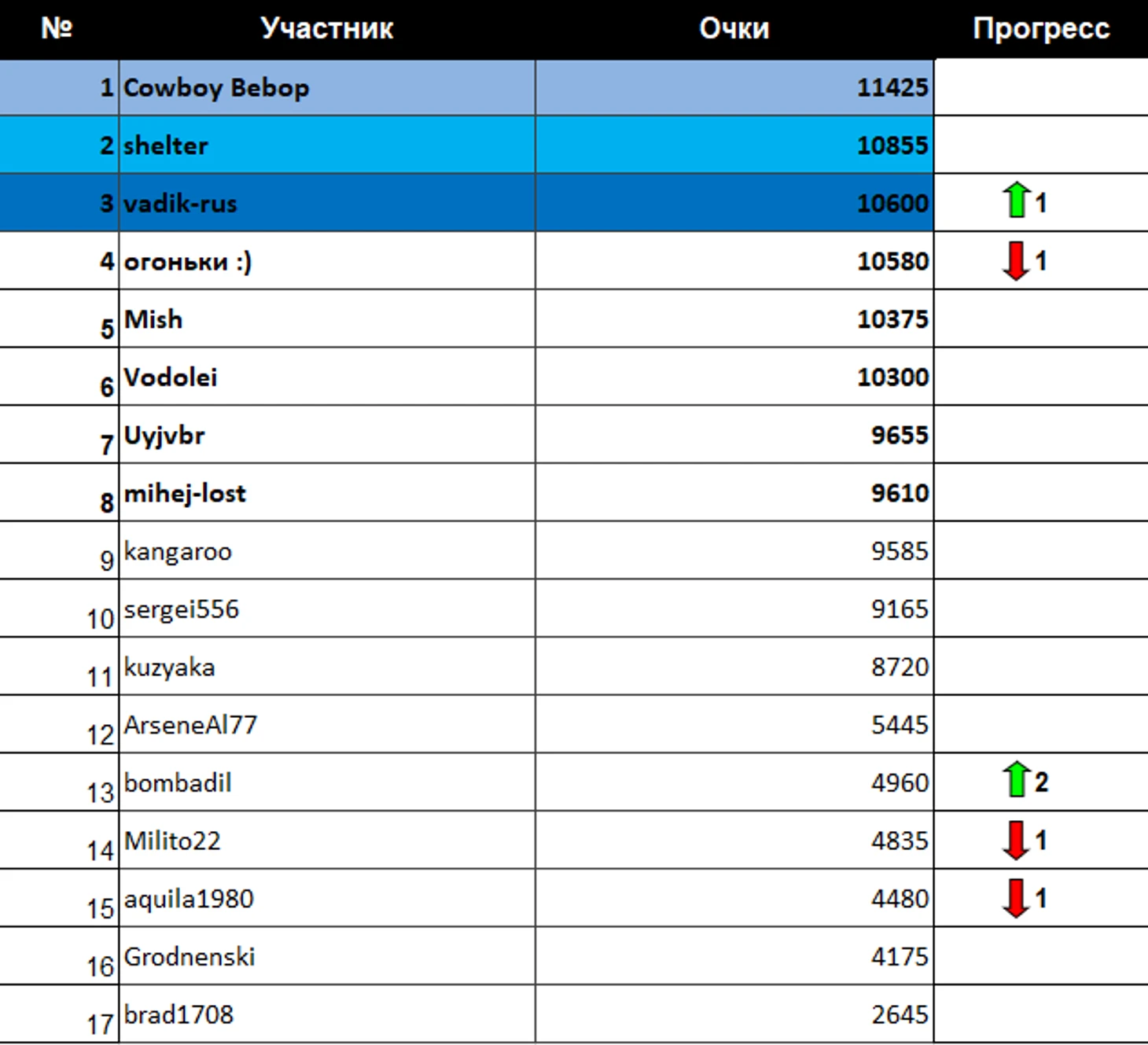*Не забываем поздравлять чемпионов турнира в коментариях к посту ведь на их месте в любой момент можете оказаться и вы :)