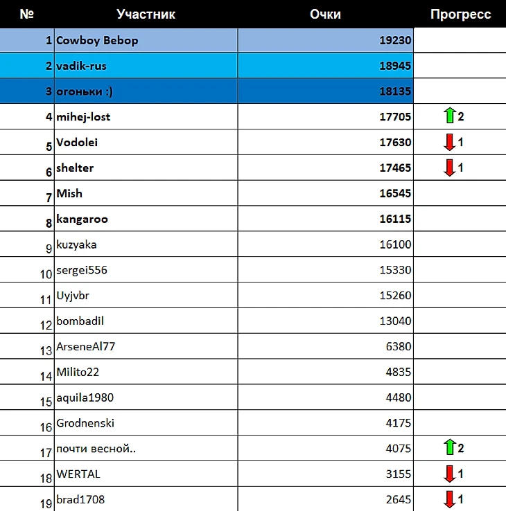 * Не забываем поздравлять чемпионов турнира в коментариях к посту ведь на их месте в любой момент можете оказаться и вы :)