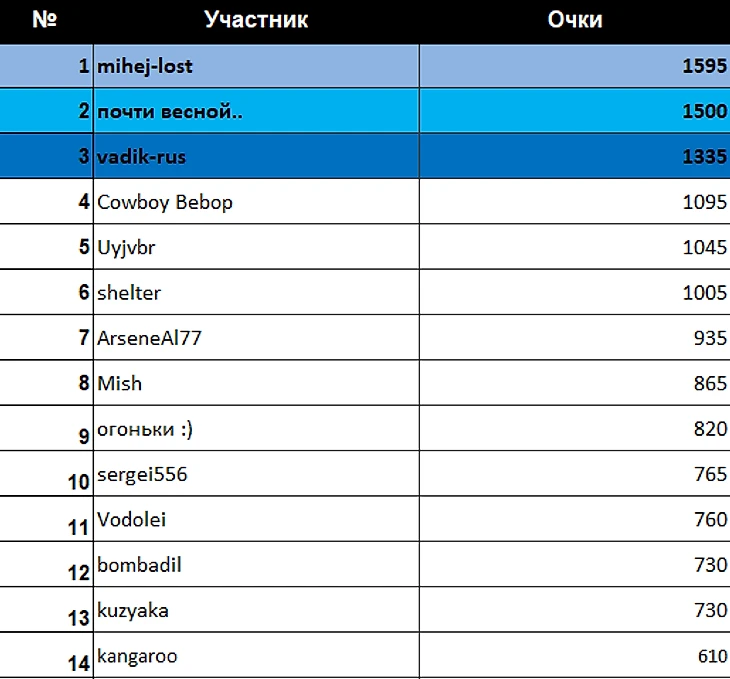 Победителем 13-го тура становится mihej-lost Поздравляем!