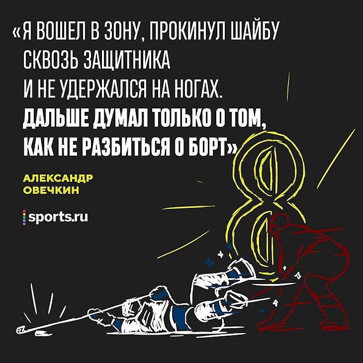 «Я получил шайбу от Брендана (Уитта – Sports.ru), увидел пространство и побежал вперед. Потом вошел в зону, прокинул шайбу сквозь защитника и не удержался на ногах. Дальше думал только о том, как не разбиться о борт», – рассказывал Овечкин.