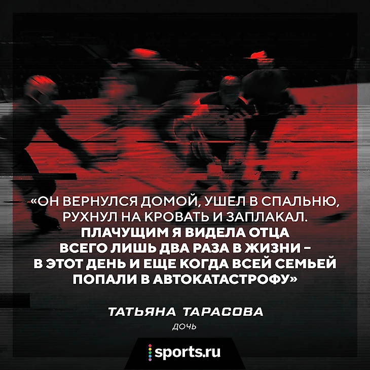 На следующий день Анатолия Тарасова вызвали в Спорткомитет и сняли сразу два звания – заслуженного мастера спорта и заслуженного тренера СССР. На заседании Тарасов не отступил от мнения о предвзятом судействе, снова со всеми поругался и не принес никаких извинений. «Он вернулся домой, ушел в спальню, рухнул на кровать и заплакал: было горько от того, что с ним, преданным стране и спорту человеком, обошлись несправедливо. Плачущим я видела отца всего лишь два раза в жизни – в этот день и еще когда всей семьей попали в автокатастрофу», – свидетельствует Татьяна Тарасова.