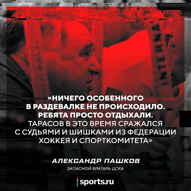 Про те минуты в раздевалке ходило много слухов, но все развенчал бывший игрок ЦСКА Александр Пашков: «Ничего особенного в раздевалке не происходило. Ребята просто отдыхали. Тарасов в это время сражался с судьями и шишками из федерации хоккея и спорткомитета. Никаких особых установок он в те полчаса не давал – не до того было!»