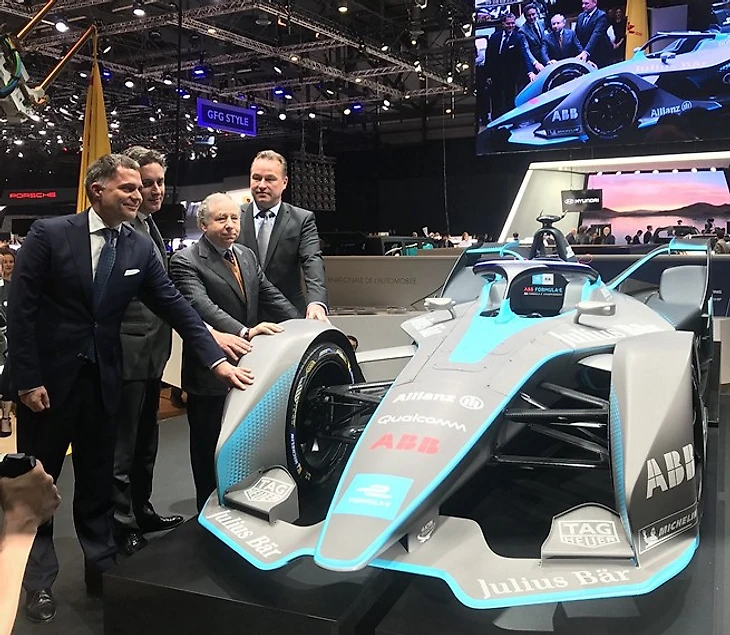 Электросерия представила фотографии концепта гоночных машин для 2019-го еще месяц назад, и лишь на автосалоне в Женеве публика увидела их вживую.