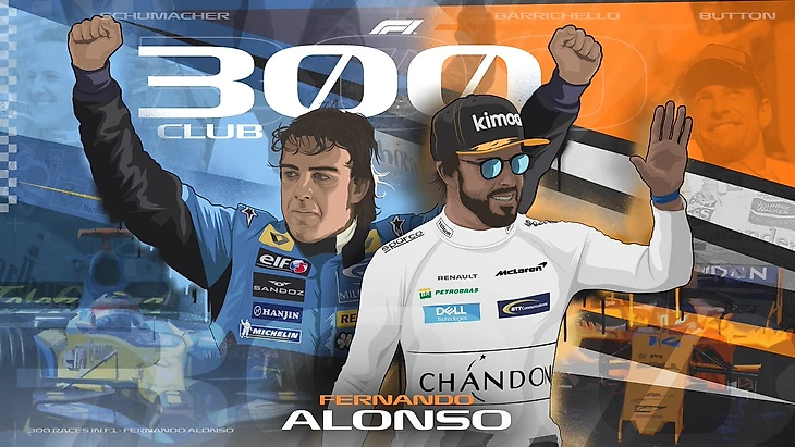 Прошедший уик-энд в Монреале стал для испанского двукратного чемпиона мира Фернандо Алонсо юбилейным – уже 300-м. Уроженец Овьедо – четвертый гонщик в истории, достигший столь знаменательного числа, и присоединился к рекордам Михаэля Шумахера (308 Гран-при за карьеру), Дженсона Баттона (309) и Рубенса Баррикелло (326).